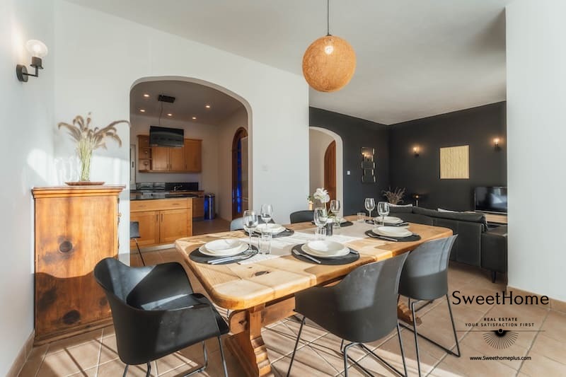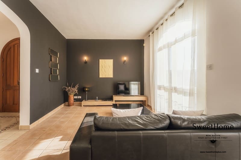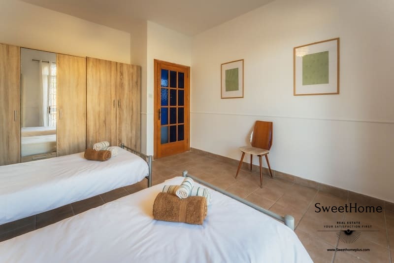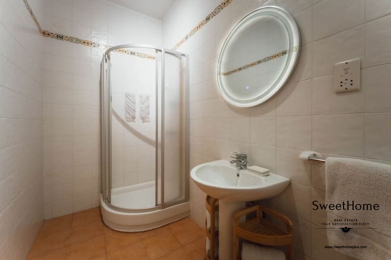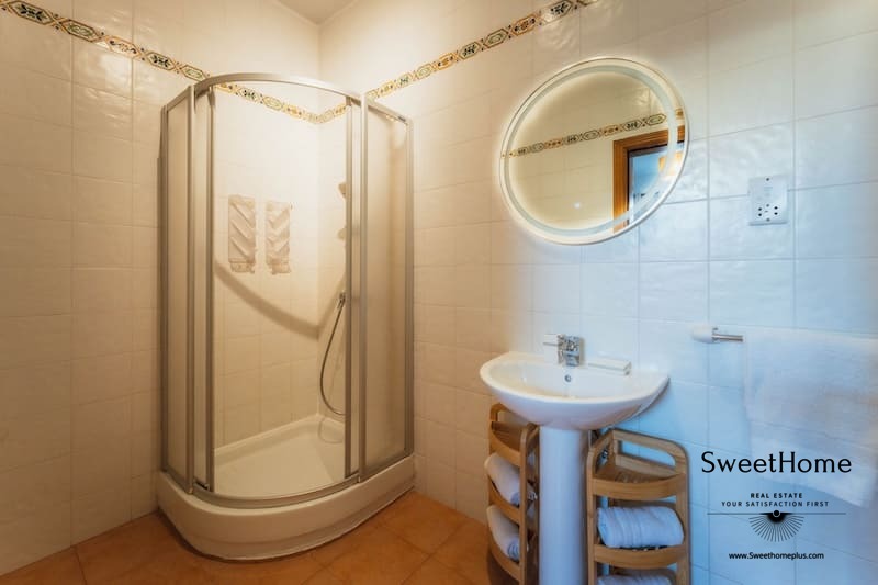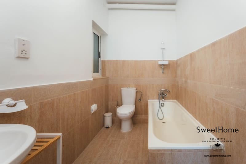 This beautiful apartment is located on the 1st floor and comprises an entrance hall, a spacious sitting room, a washroom (which can also serve as a guest toilet), a main bathroom, a kitchen-dining area, and three bedrooms (one of which is equipped with air conditioning). All the rooms, except the bathroom, have access to balconies.